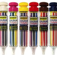 8色の芯が1本のペンに収納された、ペンコの8カラークレヨンです。見た目もかわいく書き味も滑らか。ヘッド部をくるくるとまわして、色を変え使用します。収納色:黒、赤、ピンク、紫、黄色、オレンジ、緑、青※一部画像に他のカラーの商品を使用しております。