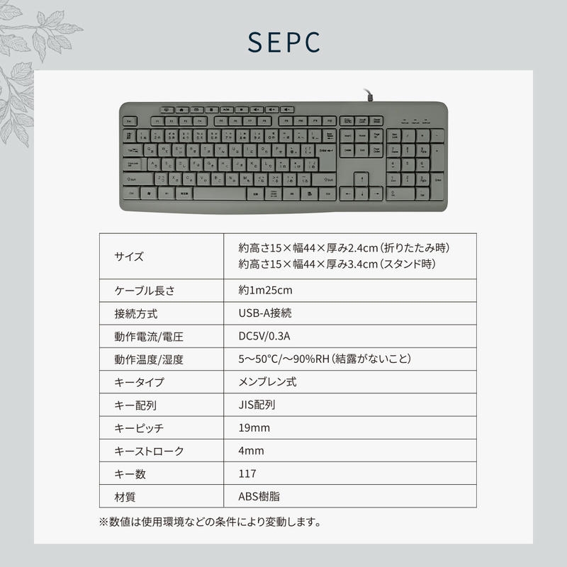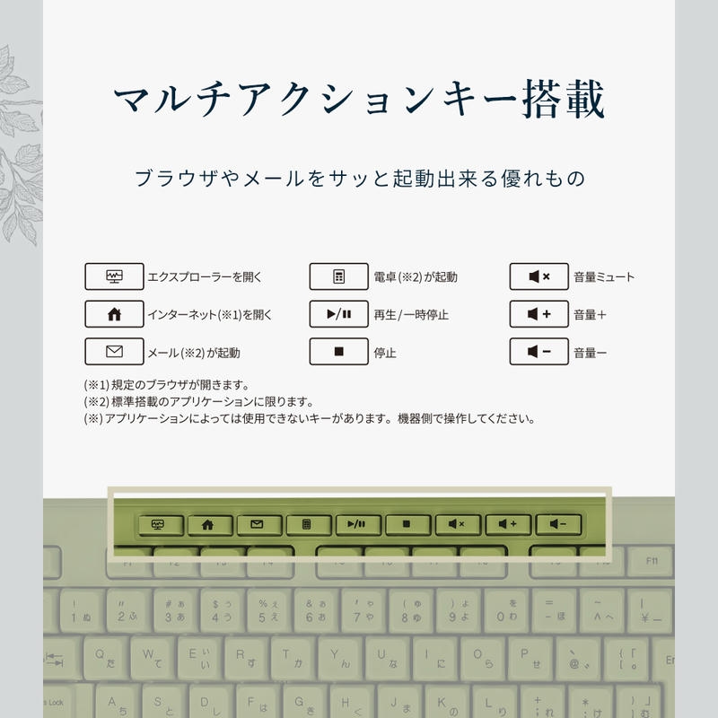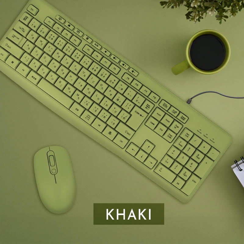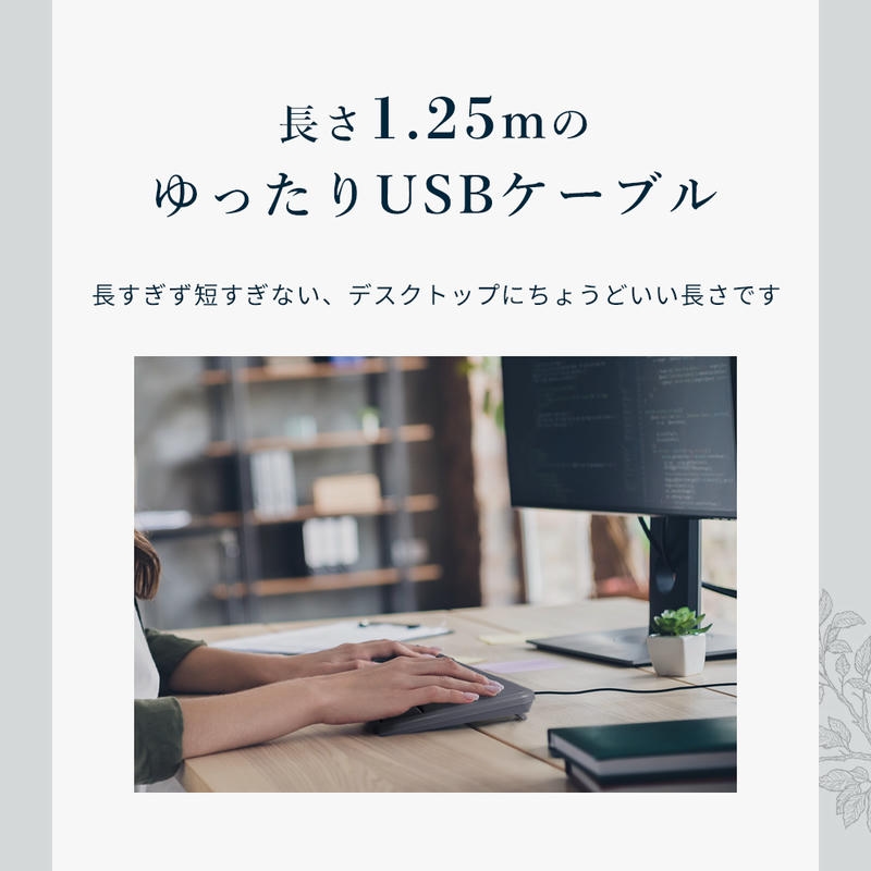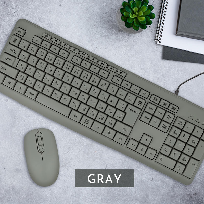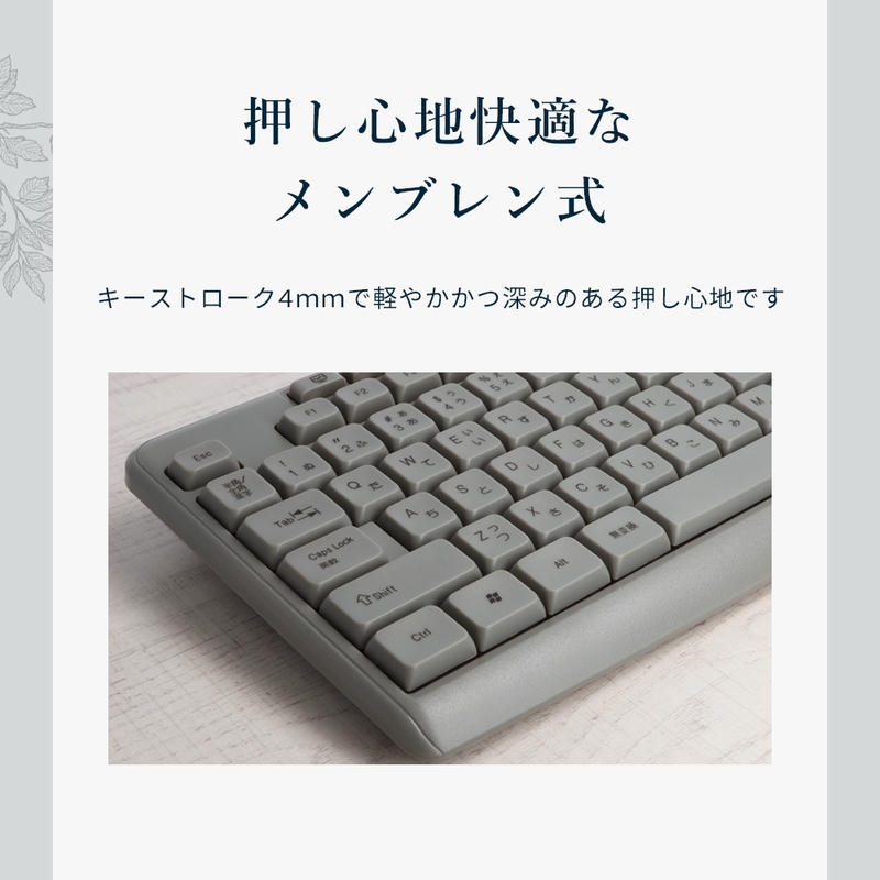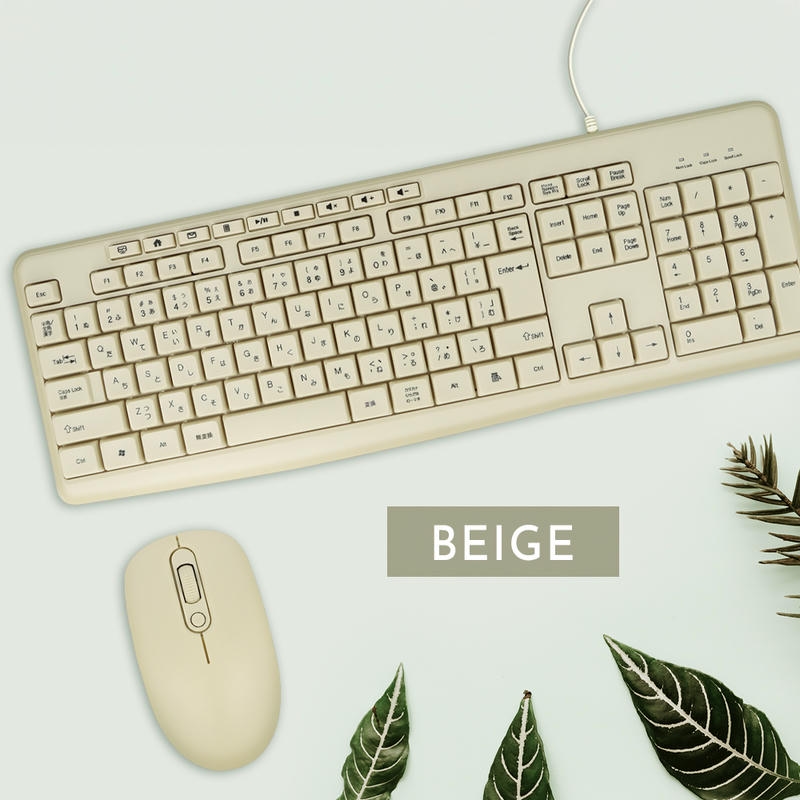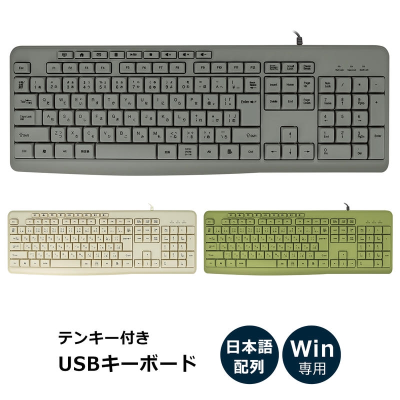 アースカラーがおしゃれな有線接続のUSBキーボードです。