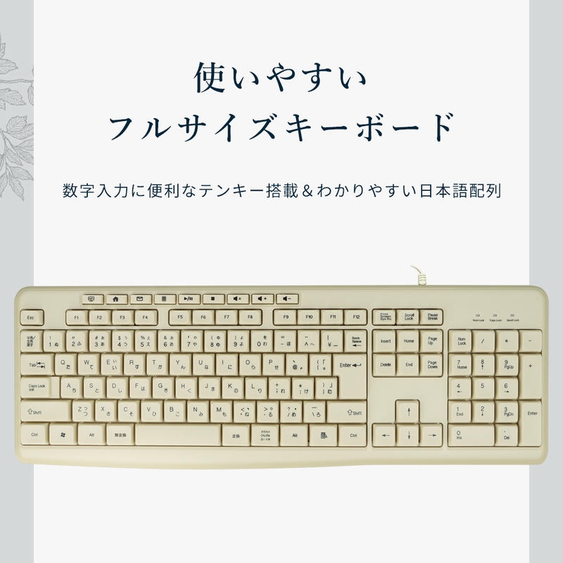 テンキー付きのフルサイズキーボードだから、データ入力の多い作業や事務仕事にもぴったり。