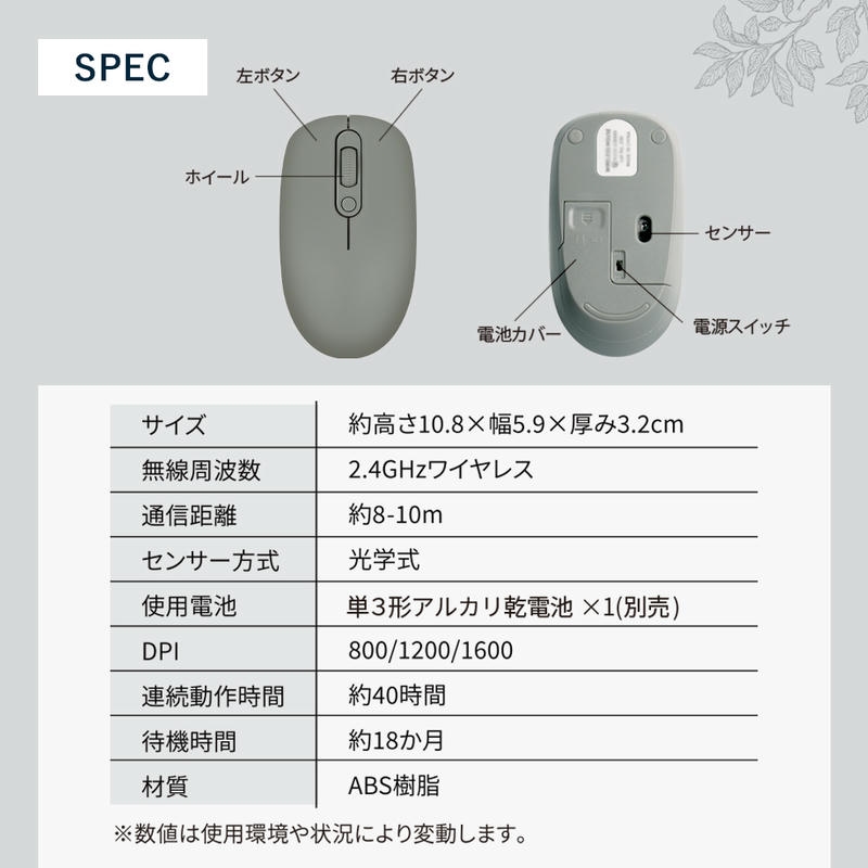 アースカラーがおしゃれなワイヤレスマウスです。