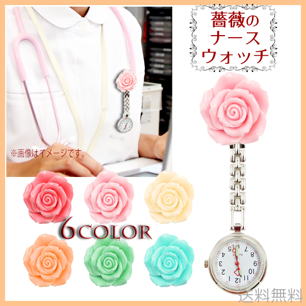 ( クリップウォッチ ナース コンパクト レディース 時計 薔薇 バラ 腕時計 職場 最適 秒針付 脈拍測定 キッズ 蓄光 ホワイト ピンク オレンジ ホワイト ブルー グリーン )