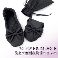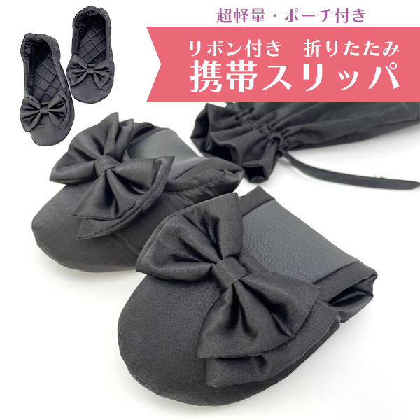 携帯用 リボン付き 折りたたみ スリッパ 黒 無地 シンプル レディース 女性 スリッポン 冠婚葬祭 学校行事 保護者会 面談 入学式 卒業式 授業参観 室内履き