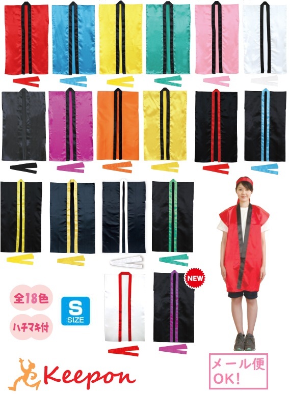 名入れ可 サテンロングハッピ(ハチマキ付) Sサイズ(高学年?中学生用) (3個までメール便可) 18色 小学生 法被 半被 安い こども キッズ ダンス アーテック 無地