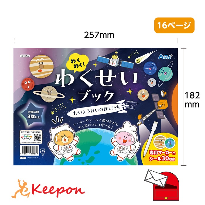 シールやマーカーで遊びながら、太陽系の星々について楽しく学べるワークブックです。