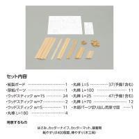 丸棒φ6×5mm×37、丸棒φ6×48mm×47、丸棒φ6×70mm×12、丸棒φ6×100mm×11、丸棒φ6×180mm×4、ウッドスティック2×15×200mm×24、ウッドスティック2×7×200mm×2、ウッドスティック2×5×200mm×12、紙製ボード×1、シート×1