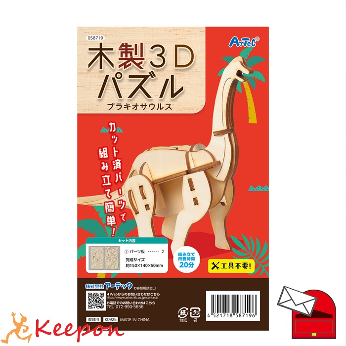 木製3Dパズル ブラキオサウルス(12個までメール便可) アーテック 玩具 おもちゃ パズル 動物 保育園 幼稚園 幼児 子ども 恐竜