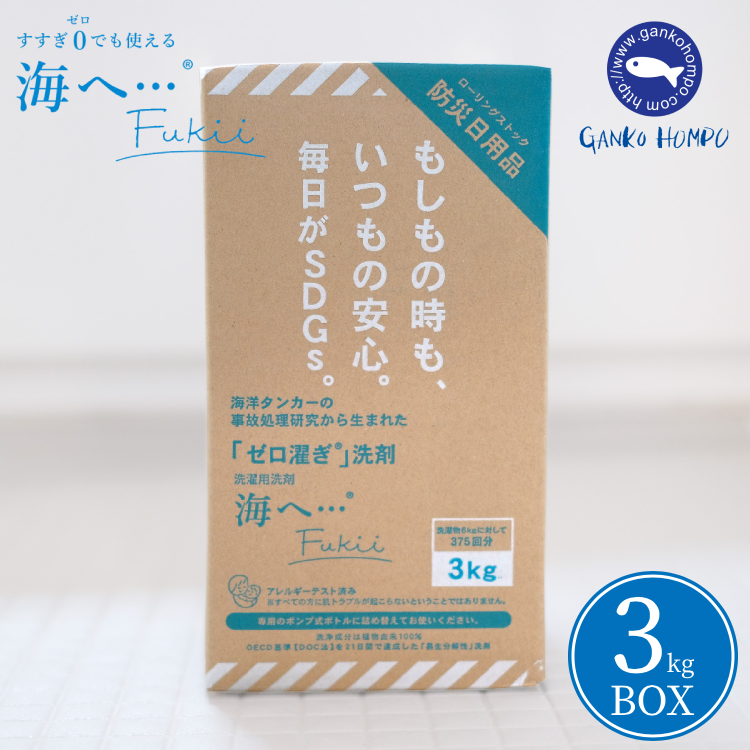 がんこ本舗 海へ ・・・ Fukii 3kg BOX 衣類用洗濯洗剤 詰替え フッキー 詰めかえ ストック 大容量 爆買