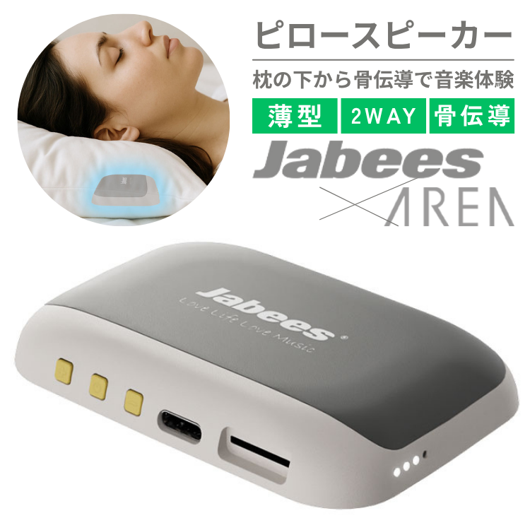 | 注意事項 | ・ご使用前に本取扱説明書を必ずお読みのうえ、正しくお使いください。 ・本製品は医療機器ではありません。 ・低音が強調される音源や低音ボイスは商品の特性上聞き取りにくい場合がございます。 ・振動伝達型なので音量を上げても通常のスピーカーのようなボリューム調整幅があるものではございません。 ・スマートフォンとの接続にはワイヤレス(Bluetooth)で行います。心臓ペースメーカーなどの医療機器を装着している方は、医師に相談の上ご使用ください。 ・本製品は骨に振動で伝える構造です。直接当てなくても耳元に置くなどしてご利用しやすい体勢でご利用に適した配置でお楽しみ頂く事も可能です。 ・本製品の充電を行う際は枕から取り出し熱がこもらない状態で充電を行ってください。 ・濡れた手での充電ケーブル接続は感電や故障の原因になりますのでお止めください。 ・本製品は防水・防滴仕様ではありません。水洗いや水没は故障・発熱の原因となりますのでお止めください。 ・高温多湿・直射日光・暖房器具付近・火気のある場所を避け、ご利用及び保管ください。 ・小さなお子様やペットの手の届かない場所に保管してください。 ・圧迫・落下により内部構造が損傷する恐れがあります。強い衝撃を与えたり、本品に座ったり踏んだりしないでください。 ・分解・改造・修理は絶対にしないでください。 ・本製品を布団などでくるんだりし過度に密閉しないでください。熱がこもり故障の原因となる場合がございます。 |