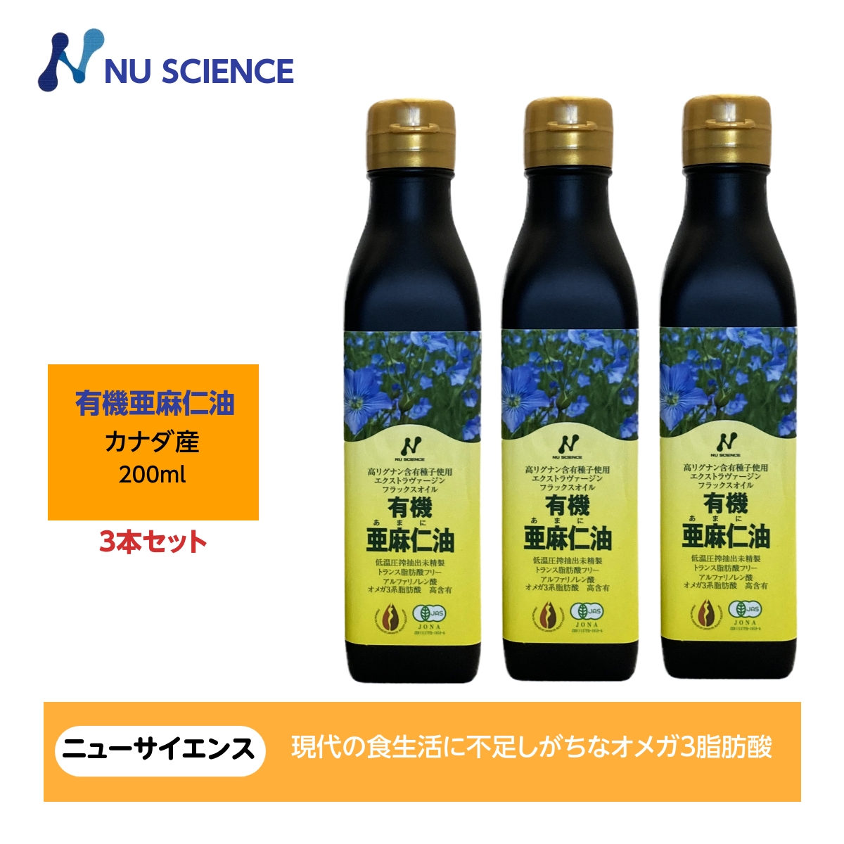 亜麻仁油(フラックスオイル)カナダ産 200ml ニューサイエンス 3本セット