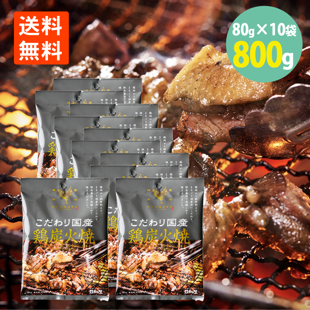 こだわり国産 鶏炭火焼 80g×10袋 わけあり 賞味期限2026.5.12 日向屋 国産若鶏 送料無料 常温 保存 鳥炭火 酒の肴 直火 食べやすい おつまみ