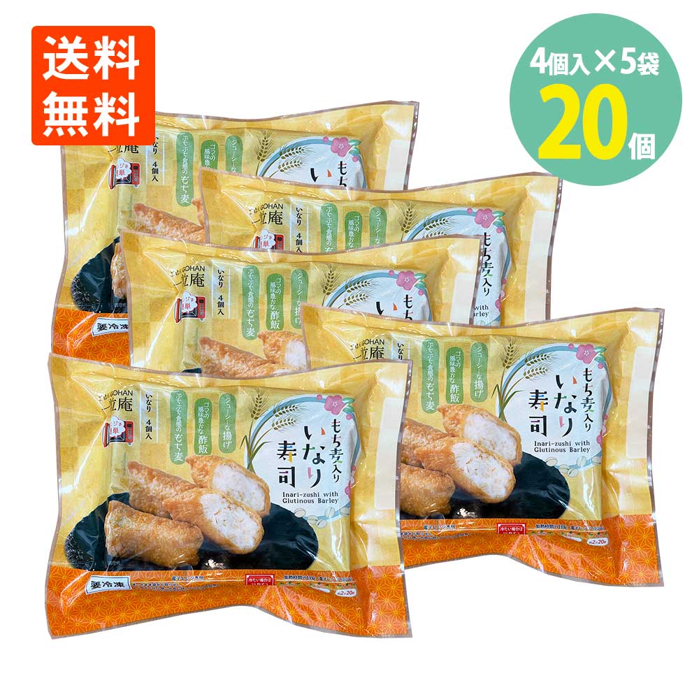 もち麦 入り いなり寿司 4個入×5袋 冷凍 送料無料 一粒庵 いなり レンジ 簡単調理 もちむぎ おいなりさん 稲荷 冷凍 いなり寿司