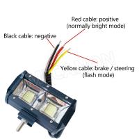 配線方法:赤のケーブルをプラスに、黒のケーブルをマイナスに、黄色のケーブルをブレーキまたはステアリングに"