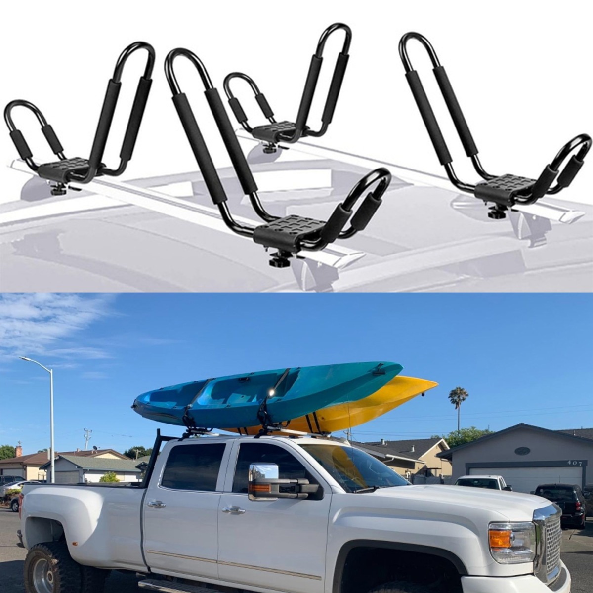 汎用 2個 カヤック ルーフラック トップ ラック キャリア スチール ブラック カヌー サーフボード パドルボード 車 自動車 屋根 取り付け