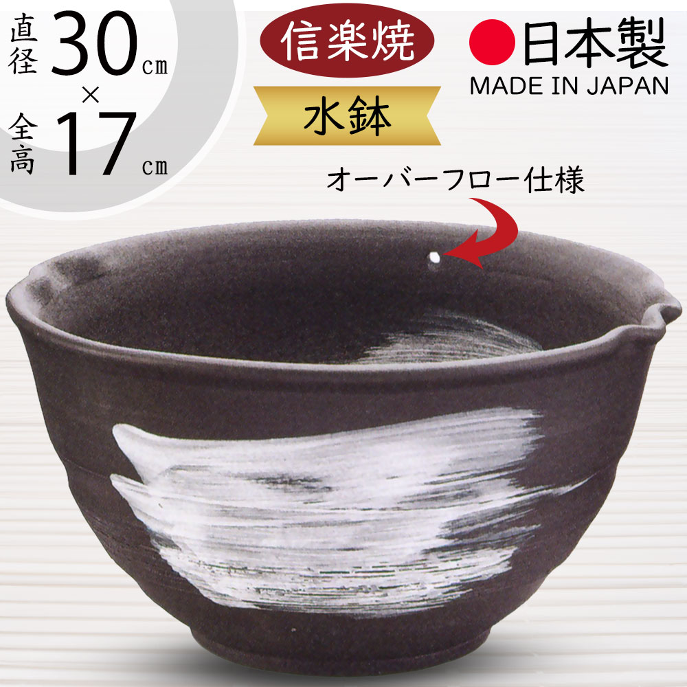 水鉢 おしゃれ 人気 陶器製 おすすめ 信楽焼 国産品 日本製 ビオトープ ハイドロカルチャー 水生植物 睡蓮鉢 スイレン鉢 金魚鉢 メダカ 和風 器 白刷毛目黒水鉢