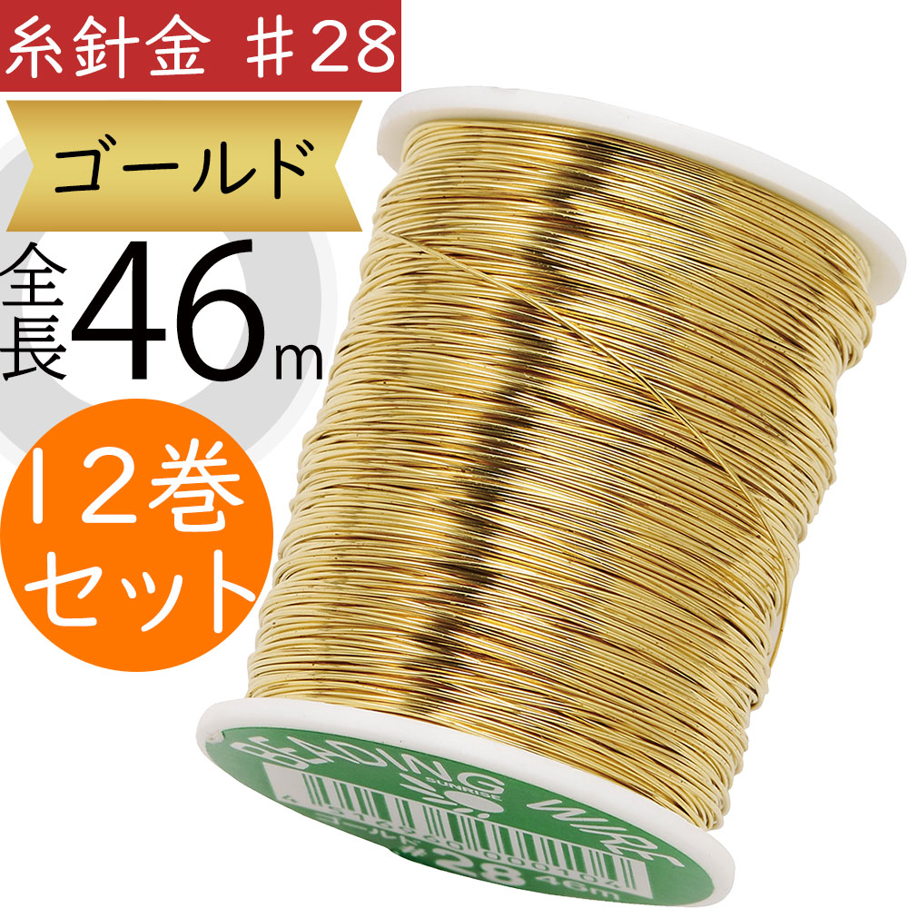 糸針金 ♯28 ゴールド 金 おしゃれ 人気 フローラル 資材 花材 手芸用品 素材 材料 パーツ 工作 ワイヤリング 茎の補強 リボンワーク 雑貨 1巻46m 12巻セット