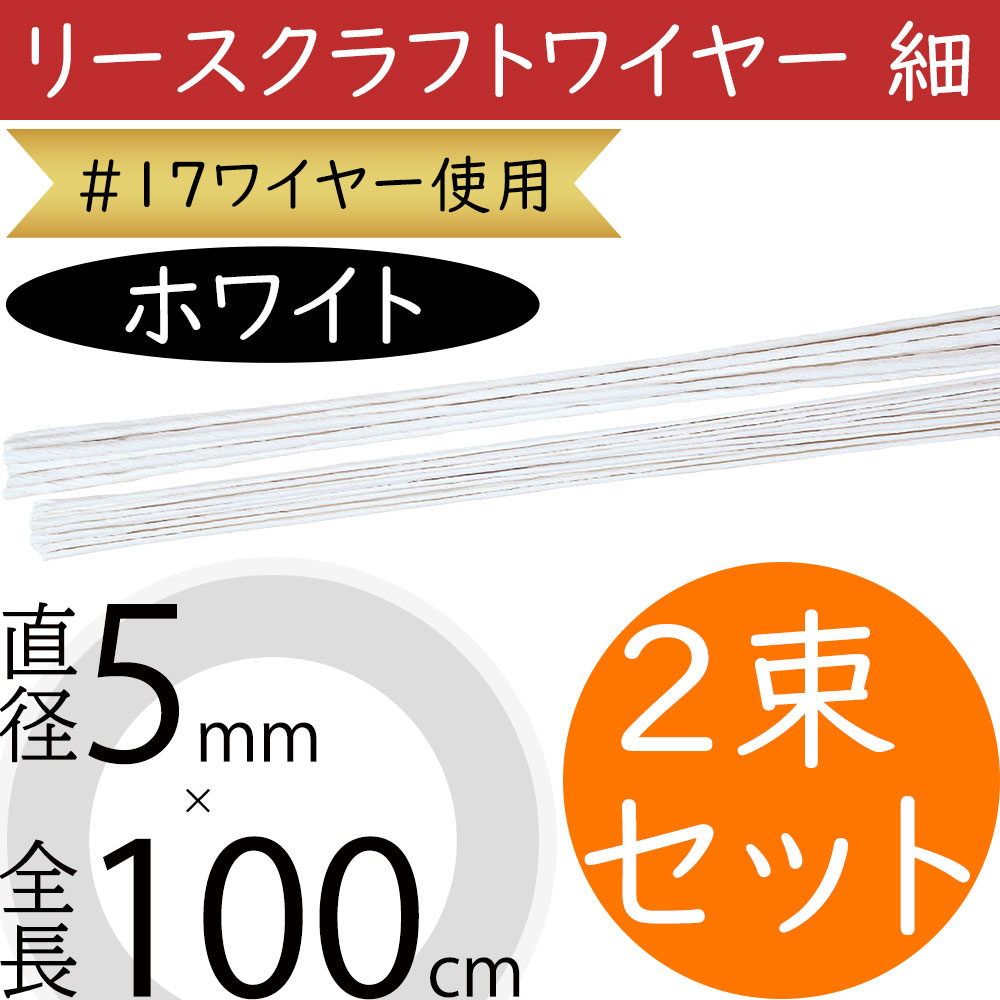 リースクラフトワイヤー細 ホワイト 白 #17 おしゃれ 人気 資材 花材 手芸用品 素材 材料 工作 製作 ワイヤリング 雑貨 全長100cm×直径5mm 2束セット 1束20本