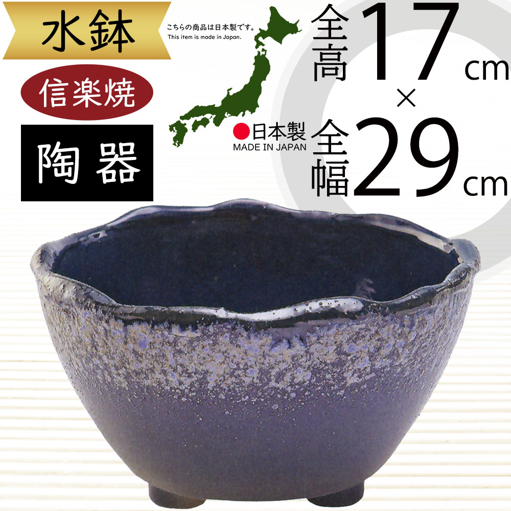 水鉢 おしゃれ 陶器製 信楽焼 人気 大型 花器 インテリア 家具 ビオトープ ハイドロカルチャー 水生植物 伝統工芸 和風 モダン 国産品 日本製 青窯変足付 10号