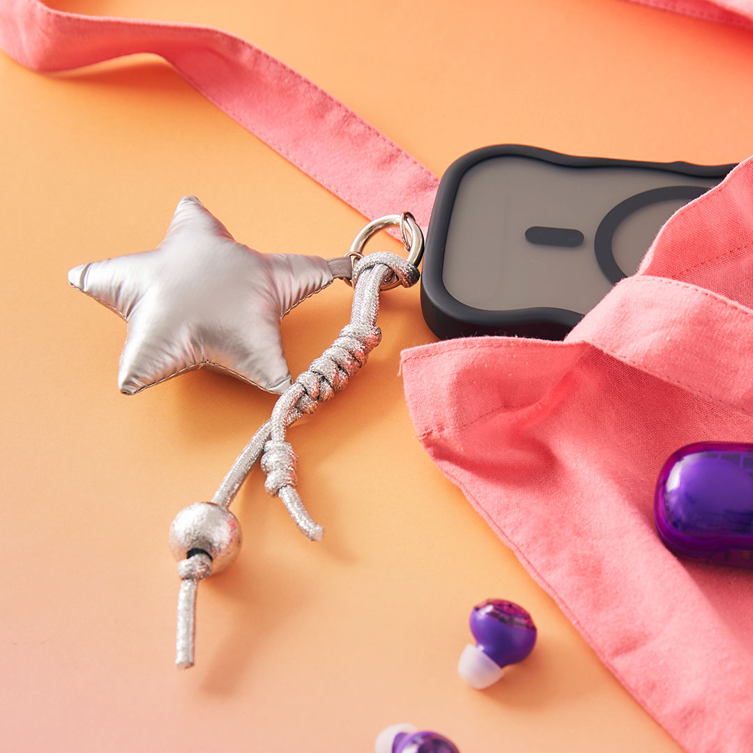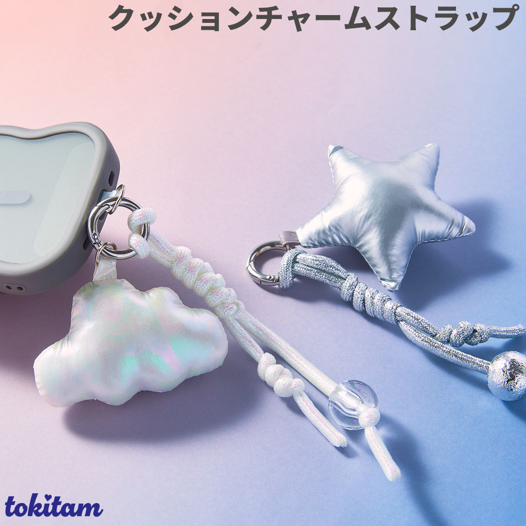 ぷっくりとした立体感と異素材の輝きが目を引く、クッションチャームストラップ。