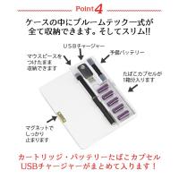 ・プルームテックのカートリッジ、バッテリー、たばこカプセル、USBチャージャーをまとめて携帯できます。 マウスピースをつけたまま収納が可能です。
