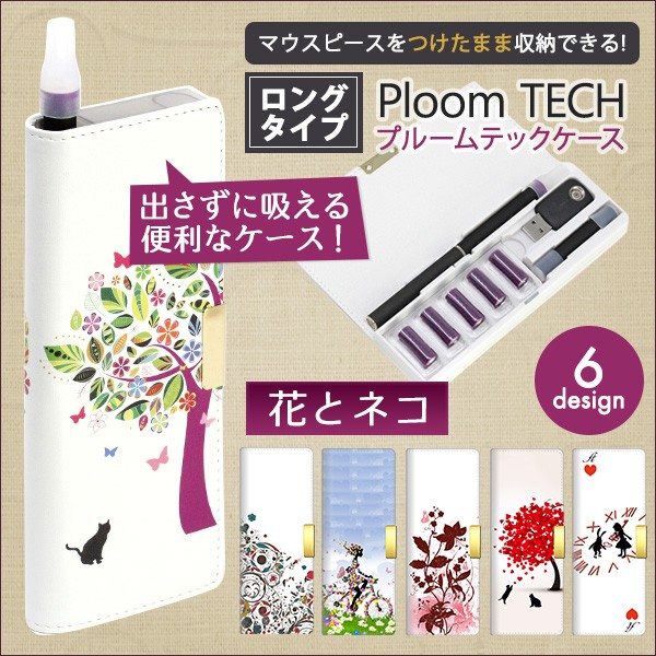 プルームテック ケース マウスピース つけたままOK プルームテックコンパクト ロングタイプ【花とネコ】 フラワー 猫 ニャンコ 印刷 メール便送料無料