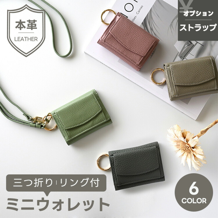 商品名:ミニウォレット リング付き 【 本革 Nuance 】 三つ折り財布 ミニ財布 コンパクト くすみカラー ニュアンスカラー レディース 大人 おしゃれ メール便送料無料