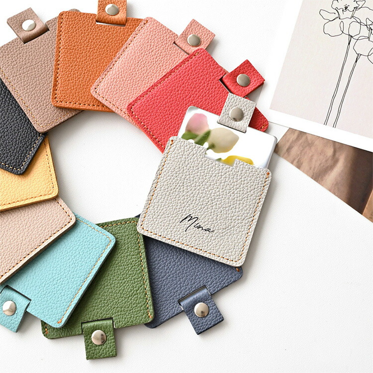 ポケットミラー 名入れ シュリンクレザー 姫路レザー レザー 本革 コンパクトミラー 手鏡 贈り物 プレゼント プチギフト