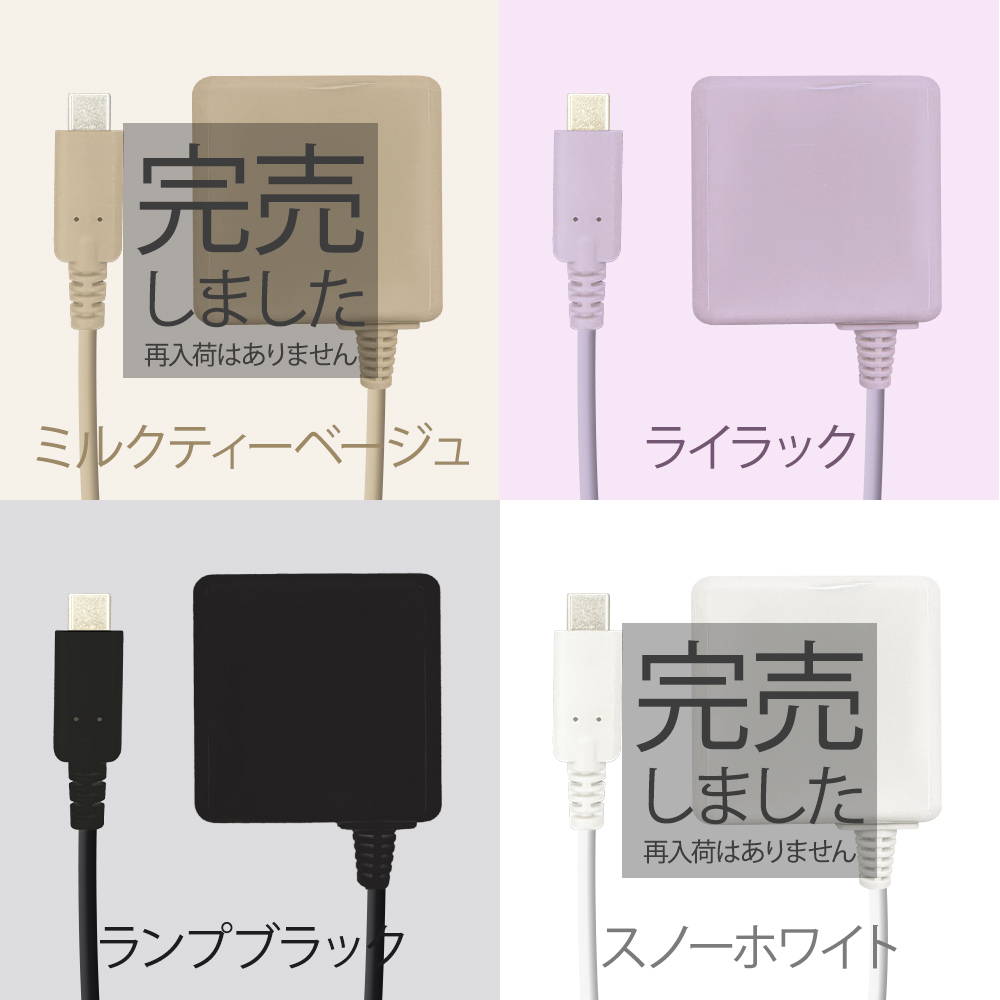 [商品概要] AC100V〜240V海外対応モデルです。 最大出力電流2A。180度回転プラグ付き。 取り回しのしやすい、シリコン素材ケーブル外皮を採用したAC充電器です。絡まりにくく、コンパクトで持ち運びも簡単です。 Type-Cケーブル一体型なので、別途ケーブルを用意する必要がありません。(Type-Cポートを搭載する機器を使用する場合に限ります。) [商品仕様] Type-C タイプC スマホ AC充電器 最大出力2.0A ケーブル長1.5m スマートフォン Android iPhone 012tc351 eca391942 ゆうパケット 送料無料 簡易包装 USB-C Cタイプ ●入力:AC100V-240V 50/60Hz ●出力:DC5V/2A ●サイズ:約W50×H50×D20.5mm(ACプラグ含まず) ●ケーブル長:約1.5m ●重量:約65g ●使用環境温度:5-35度 この充電器はPD(Power Delivery パワーデリバリー)・QC(Quick Carge クイックチャージ)対応ではございません。PD対応のスマートフォンをお使いの場合、より充電の速さをお求めであればPD対応の充電器もご検討ください。 |
