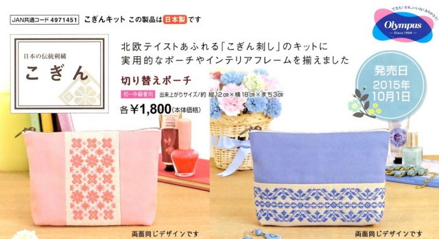 オリムパス 刺し子キット こぎん 切り替えポーチ