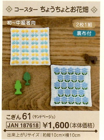 オリムパス 刺し子キット こぎん61 コースター ちょうちょとお花畑