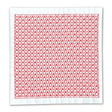 約縦34cm×横34cm キット内容 ●晒木綿(綿100%):白 ●作り方説明書●刺し子糸(綿100%)●刺し子針 図案は布にプリント済み。