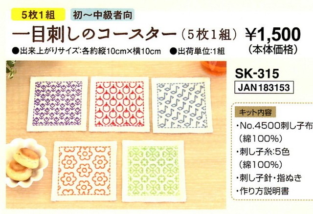 オリムパス 刺し子キット 一目刺しの コースター(5枚1組) SK-315