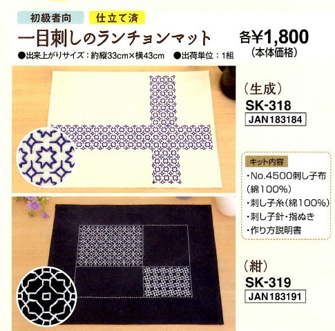 オリムパス 刺し子キット 一目刺しのランチョンマット