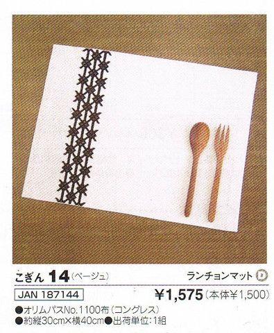オリムパス 刺し子キット こぎん14 ランチョンマット