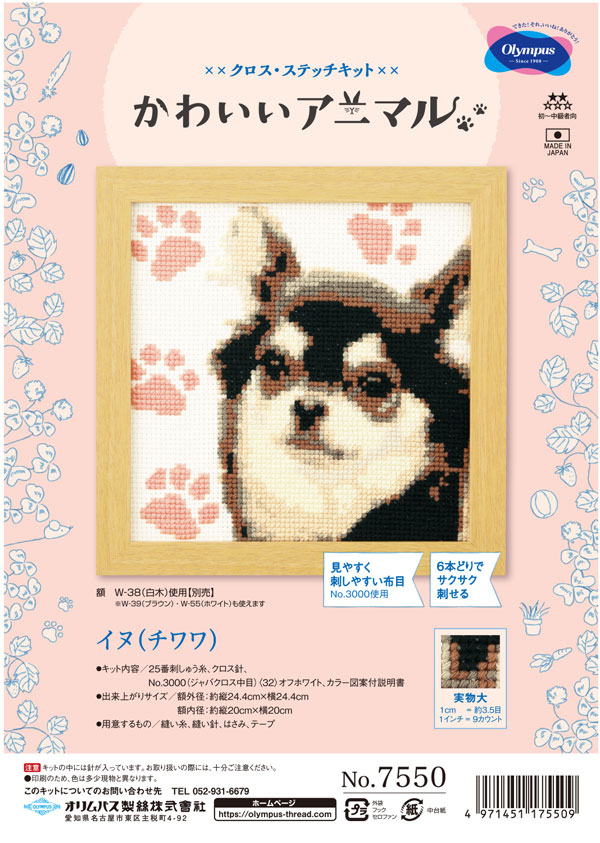 刺しゅうキット イヌ (チワワ) 7550 オリムパス 【KY】 かわいいアニマル 刺繍 クロスステッチ キット