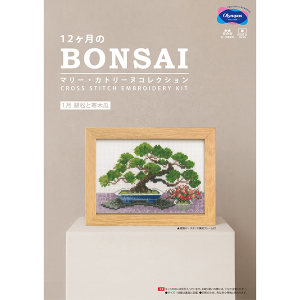 キット 1月 錦松と寒木瓜 7612 オリムパス BONSAI【KY】 刺しゅうキット クロスステッチ クロス針 フレーム付