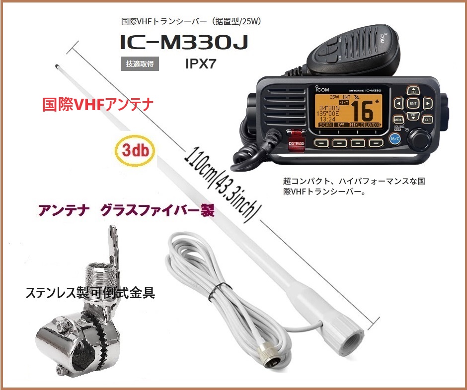 アイコム 国際 VHF 無線機 IC-M330J 25W 据置型 アンテナセット 3 co