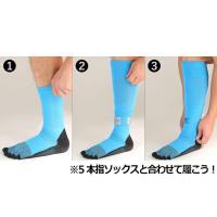 テーピングやノンスリップバンドなしで着用できるセパレートソックス。着圧機能が付加されたカーフにシリコン樹脂を加工。