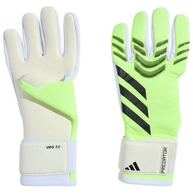 プレデターシリーズとのデザイン連動モデル。手のひらにクッション性とグリップ力に優れたURG 3.0ラテックスを使用。手の甲にニットを使用することで動きに合わせて柔軟に伸縮し、どんな動きにも対応。ハーフラップ式のリストストラップが安定したフィット感を実現。
