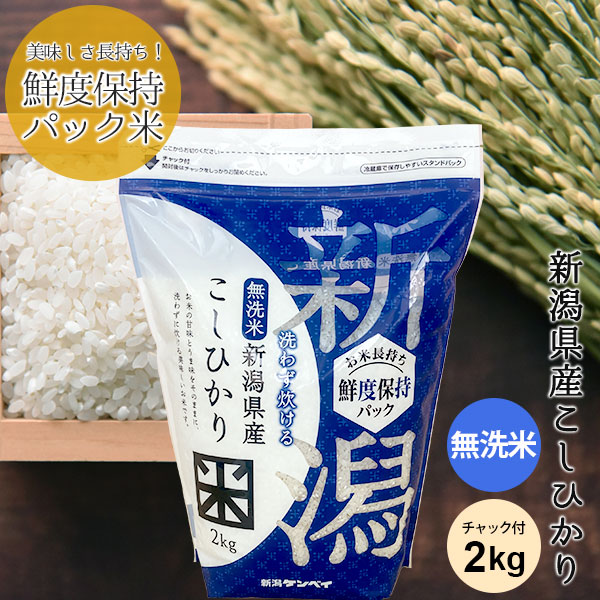 【3月お買い得品】令和7年産 お米 2kg 鮮度保持パック 無洗米 新潟産コシヒカリ チャック付 送料無料 こしひかり 白米 新鮮 少量
