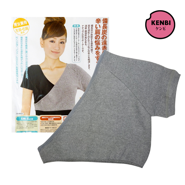 備長炭が放射する遠赤外線で肩を温め、消臭・調湿作用もある、ナチュラルな遠赤外線肩サポーターです。