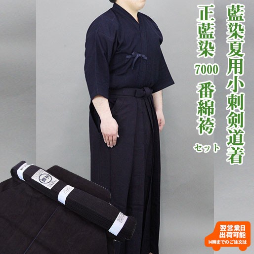 剣道 正藍染夏用小刺剣道着+正藍染7000番綿剣道袴 セット 10文字無料