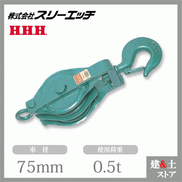 スリーエッチ 強力型滑車 75×2S 二車スナッチ(ベケット付) フック型 使用荷重0.5t HHH