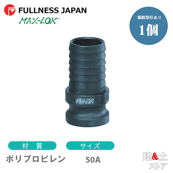 レバーカップリング 2インチ 50A MAX-E ホースシャンクアダプター(オス×タケノコ) ポリプロピレン製 マックスロック カムロック