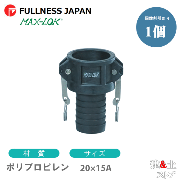 レバーカップリング 3/4×1/2インチ 20×15A MAX-C ホースシャンクカプラー(メス×タケノコ) ポリプロピレン製 マックスロック カムロック