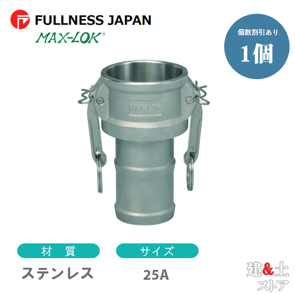 レバーカップリング 1インチ 25A MAX-C ホースシャンクカプラー(メス×タケノコ) ステンレス製 マックスロック カムロック