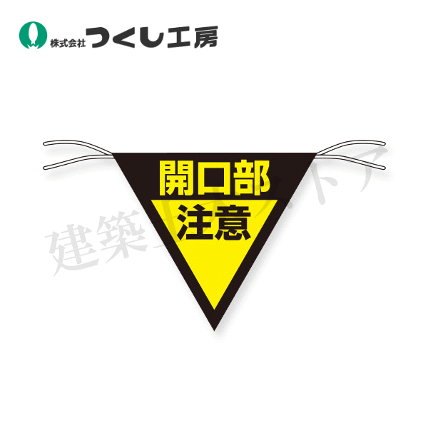 つくし工房 656 三角旗 開口部注意 ヒモ付き 300×300 ターポリン
