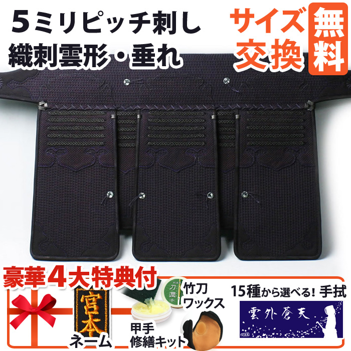 【在庫限り・完売品】 剣道 防具 垂れ ●5ミリジャストフィットピッチ刺し 織刺雲形飾り[Tc]<サイズ限定> (●説明書)