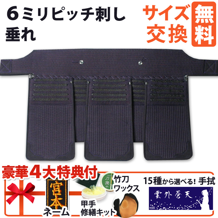 剣道 垂れ 6ミリジャストフィットピッチ刺し