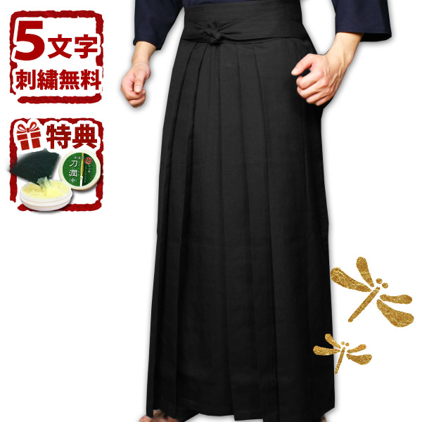 [剣道屋] 黒色 新特製 テトロン剣道袴 【5文字無料+ワンポイント刺繍無料】 内ヒダ縫製加工 子供〜大人用 ★竹刀ワックス付 ●テトロン袴・黒