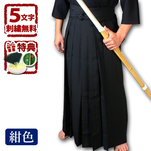 [剣道屋] 紺色 ジャージ剣道袴 『凛然』 しわにならずヒダが取れない 【5文字無料+ワンポイント無料】★竹刀ワックス付 ●「凛然・紺」 ジャージ袴